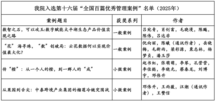 我院四位教师斩获第十六届“全国百篇优秀管理案例”奖——专业学位案例建设再添新功 2025-09-11
